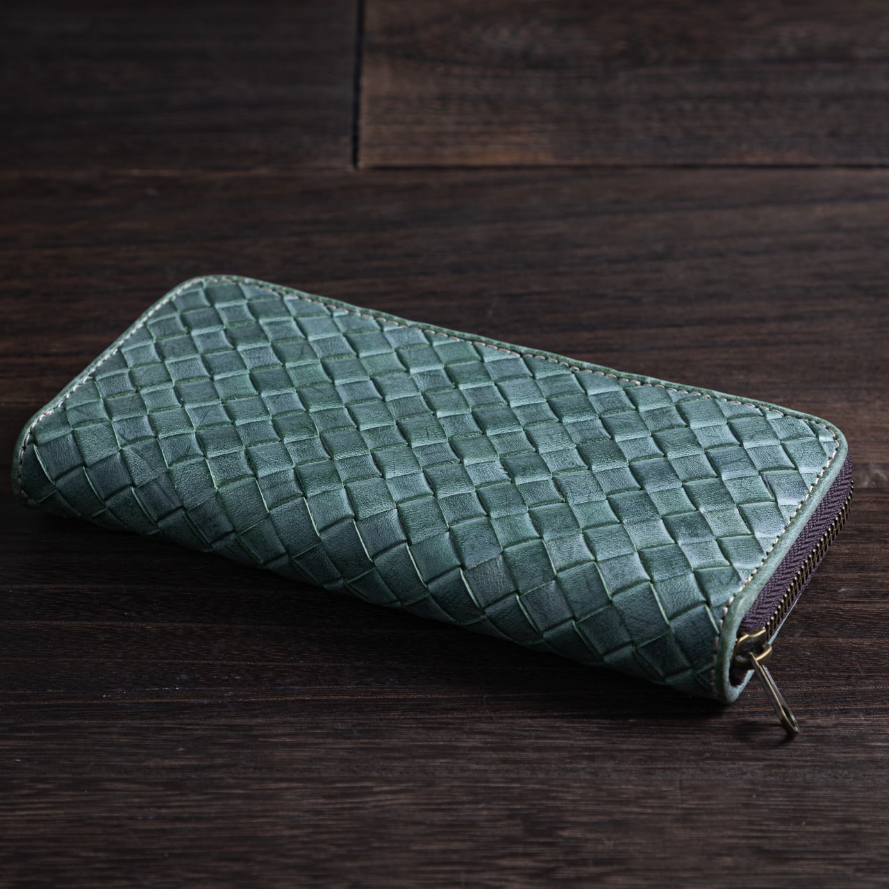 刻 -TOKI- 編み込みラウンド長財布|THE CROWN(ザ・クラウン)】グリーン