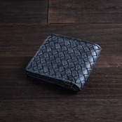 【刻 -TOKI- 編み込み二つ折り財布|THE CREST(ザ・クレスト)】ブラック